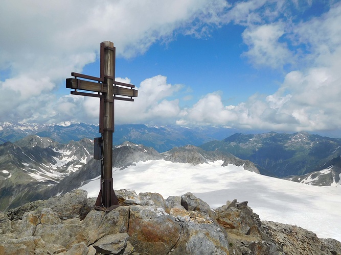 - giorno: Si segue il sentiero che porta alla Fuorcla Sura da Lavaz, quindi si segue il filo di cresta (talvolta lo si aggira) fino alla Q3015m, dove si sale il ghiacciaio e poi la crestina esposta fino in vtta. Rientro per l’itinerario di salita fino Pian Geirett.